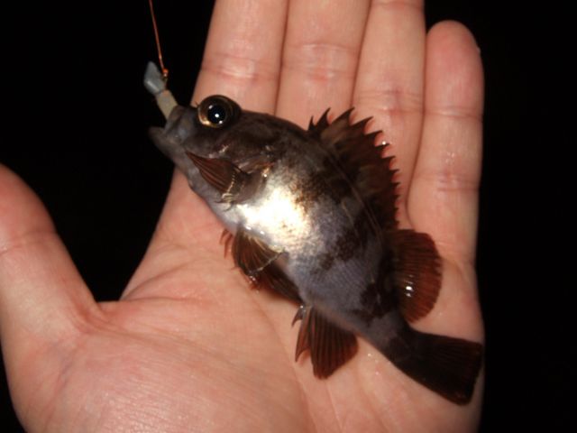 このサイズになるとこの竿で釣ると面白い。ただソリッドティップのメバル竿よりは小さなアタリはハジイテしまいます。やっぱり専用竿には専用の理由がありますね。