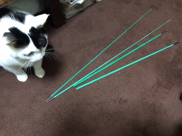 先日、中古釣具屋さんをぶらぶらしていたところ、500円程度でソリッドグラスが売っていまして、振ってみるとなかなか面白い硬さ。以前、買ったことがあったのですけど、そいつは自身の重さの影響でスロー過ぎたのですけど、今回のはそれよりもパリッとしてる感じ。こいつならナマズロッドとしてなんとかなるかも?ということで買ってきました。それも2本。