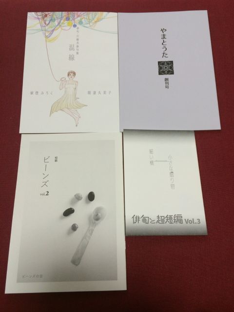 収穫物は無料配布も含めてコレ。俳句・短歌・川柳はプロの作品じゃないものが読んでみたかったから気になっていたのでなかなか嬉しい。エアコン配管はいろいろ興味をもって。豆本の作り方もなかなか親切な感じな本で面白い。値段はだいたい300円から500円くらいのものを購入しています。これからじっくり読んでみます。